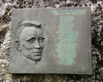Plakett av John Kristoffersen utenfor John-høla på Onøy